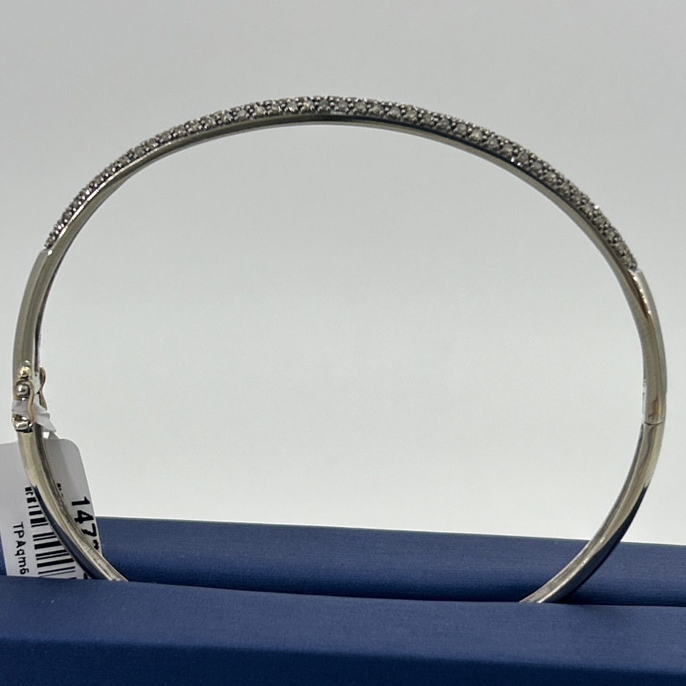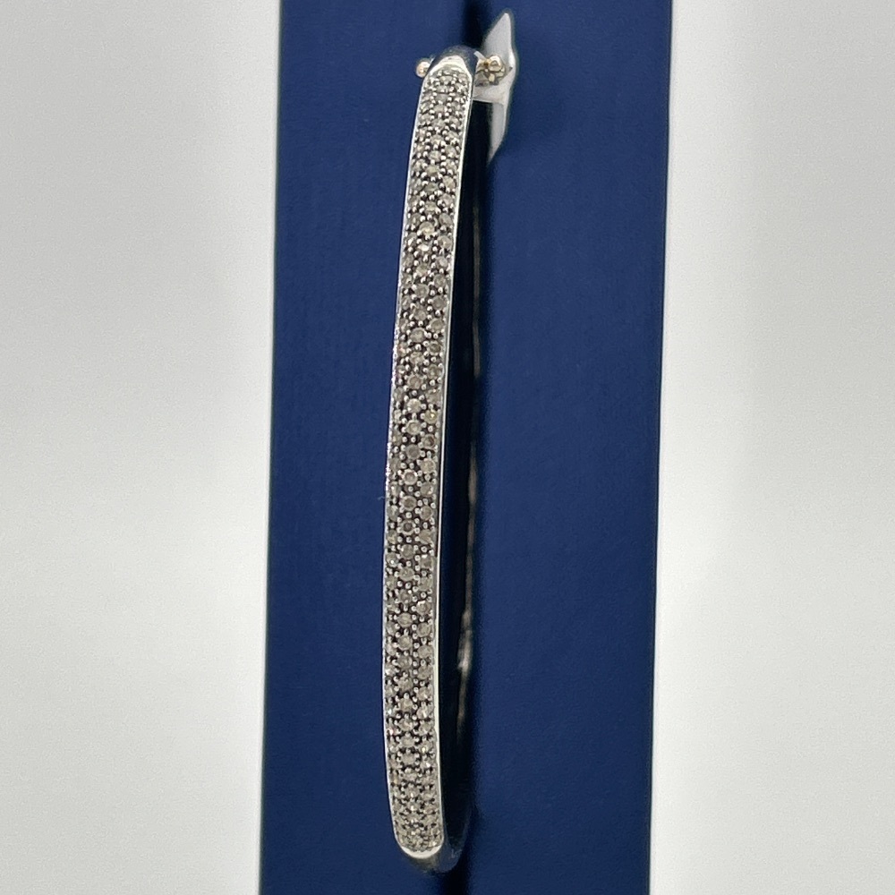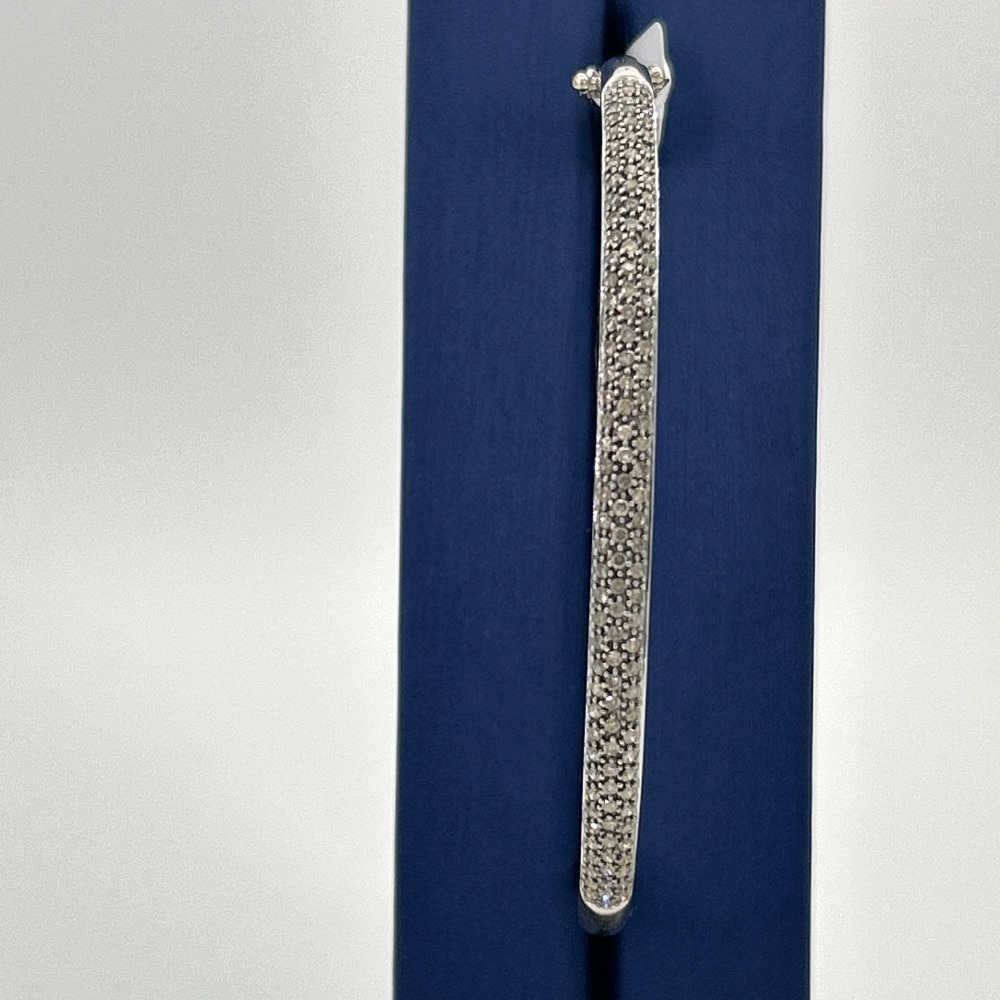 Dazzling in its beauty, this 14kt white gold bangle bracelet sparkles with 1.5ct of shimmering diamonds. Weighing an impressive 9.40gms, it's the piece your collection has been missing.