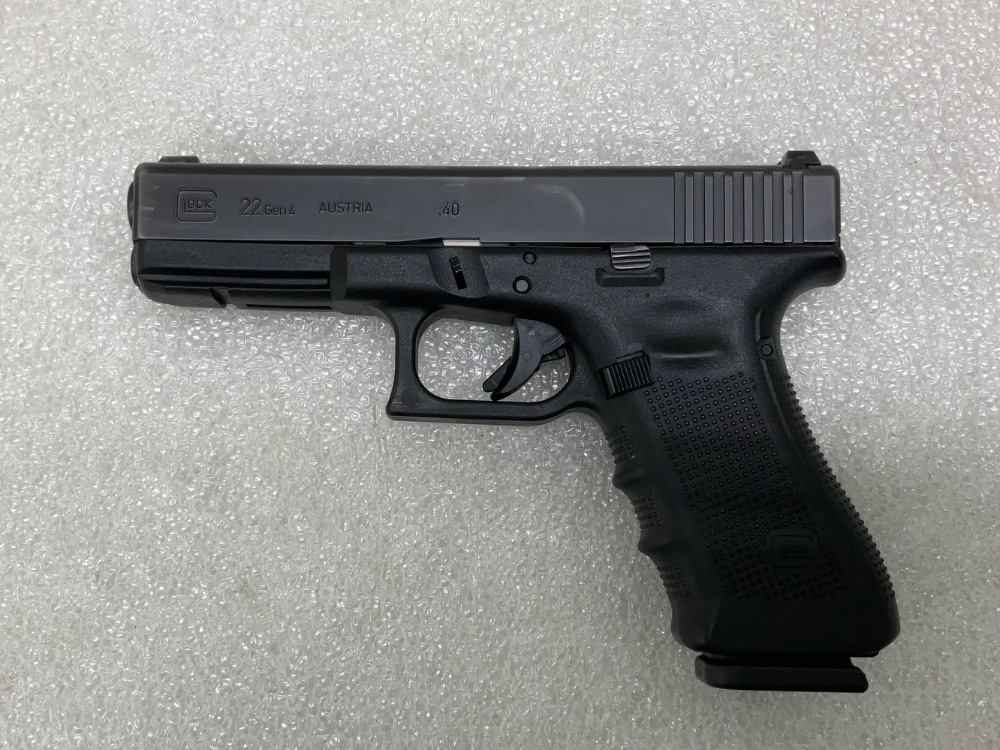 Unleash power with the Glock 22Gen4 Semi Auto Pistol. Perfectly calibrated in .40 S&W, it's a compact marvel of precision and reliability. Experience the enhanced grip, enlarged reversible magazine, and modular back strap on this fourth generation dynamo. It's not just a firearm, it's a Glock.