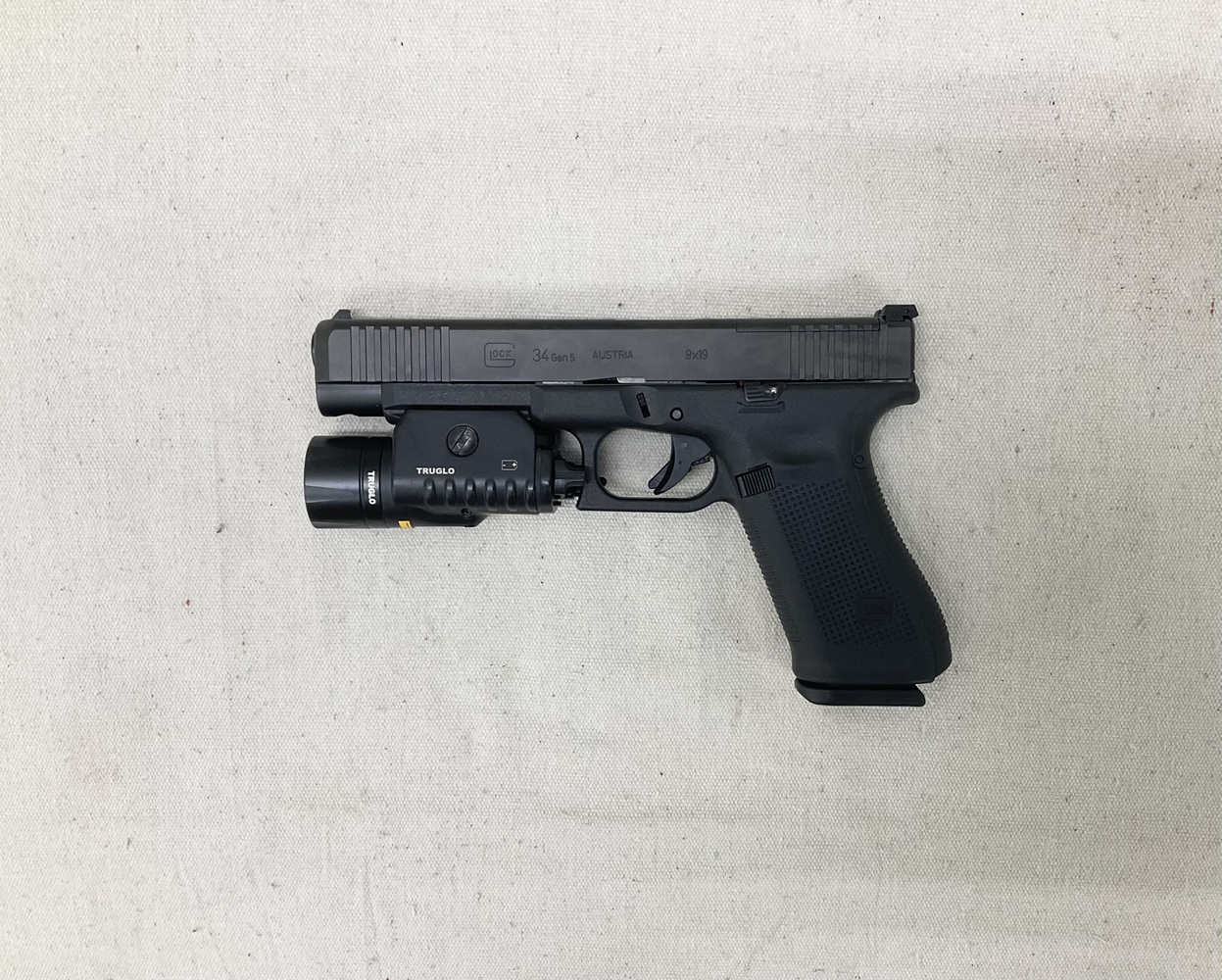 The Glock 34 Gen5 is a semi-automatic, striker-fired pistol chambered in 9x19mm caliber. It features a 5.31-inch barrel, improved trigger system, reversible magazine catch, ambidextrous slide stop lever, and a modular backstrap system. The Gen5 model also offers enhanced accuracy and durability for high-performance shooting.
