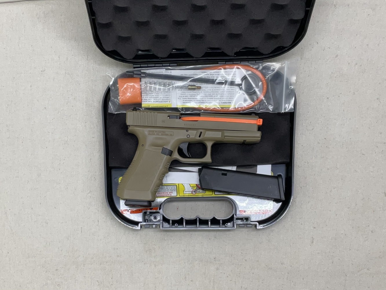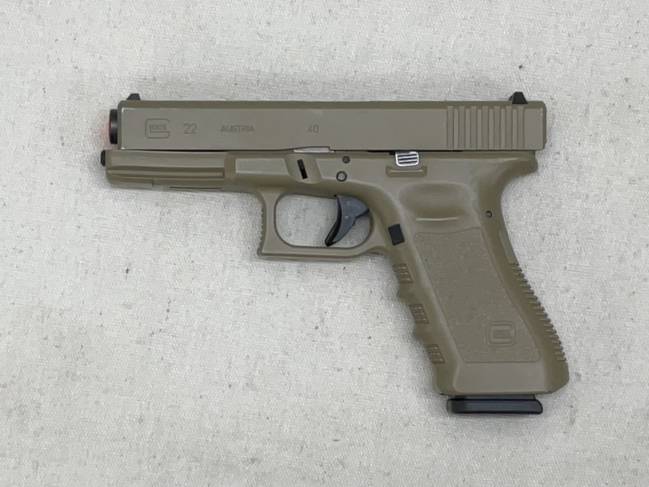 The Glock G22 Semi-Automatic .40 caliber pistol, housed in a case, offers superior reliability and versatility. Engineered with Glock's signature polymer frame for durability, it comes with two magazines for extended capacity. Standard for numerous law enforcement agencies worldwide, this reliable pistol delivers uncompromising power and commendable accuracy. Its compact design allows for everyday carry, while the safe-action system ensures safe operations. This Glock G22 set is ideal for both personal defense and professional duties