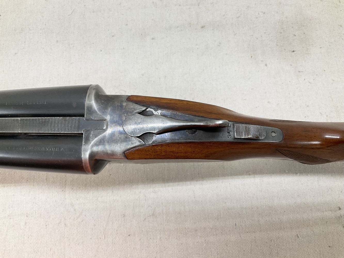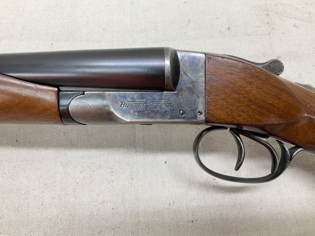 The Hunter Arms Co presents the Hunter Special, a 12ga double-barrel side-by-side shotgun. This firearm features a comfortable 30 barrel length, modified and full choke options for selective shooting. With double triggers and a swift ejector system, this shotgun promises high performance and efficiency. Perfect for hunters and sport shooters alike, it ensures accuracy and power in every shot.