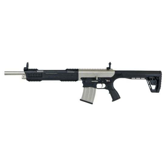 The TOKAREV TAR 12 is a semi-automatic 12-gauge shotgun with a cylinder-bore choke, fixed stock, and an 18.5-inch barrel length. It has a muzzle velocity of 1200 fps, gas-operated reloading system, and removable choke tubes. Its high-quality barrel ensures precise, accurate shots.