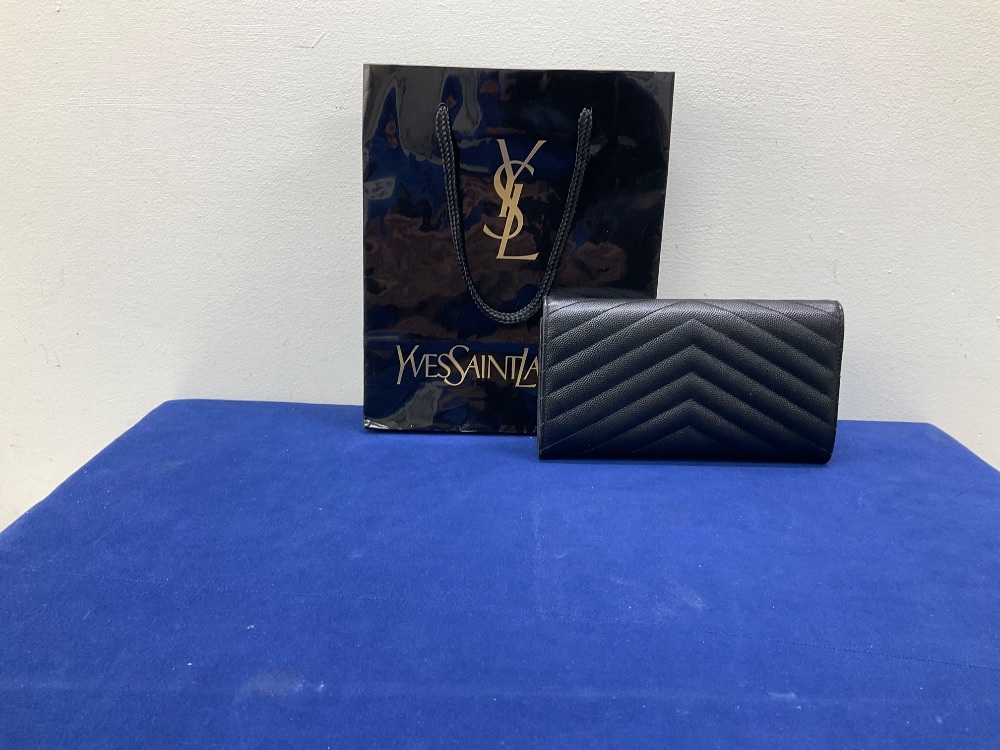 Experience the epitome of opulence with YSL BLACK, a sumptuously sleek black leather handbag and wallet duo. Subtle yet stunning, its timeless elegance radiates from every stitch, presenting an exquisite blend of luxury and style. Indulge in YSL's renowned class and quality – an ultimate statement accessory for the sophisticated fashionista.